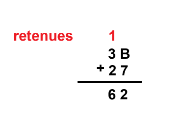 Résultat : \( 3E_{16} = 0011\ 1110_2 \)