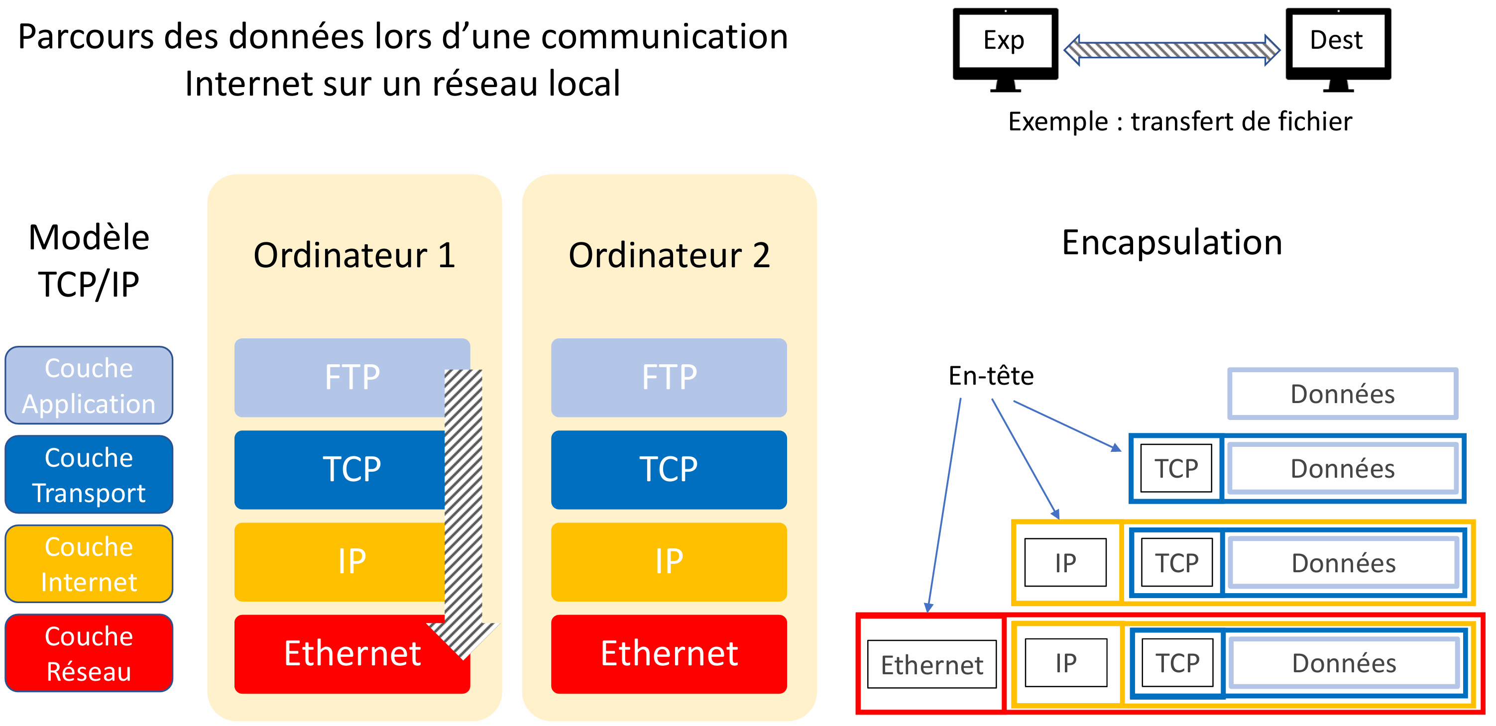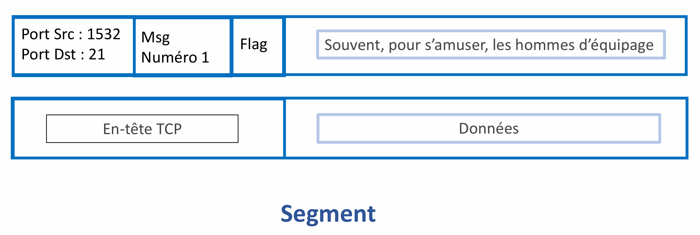 Pour envoyer un message, on ajoute des métadonnées aux données : c'est l'en-tête TCP. Elle contient notamment :