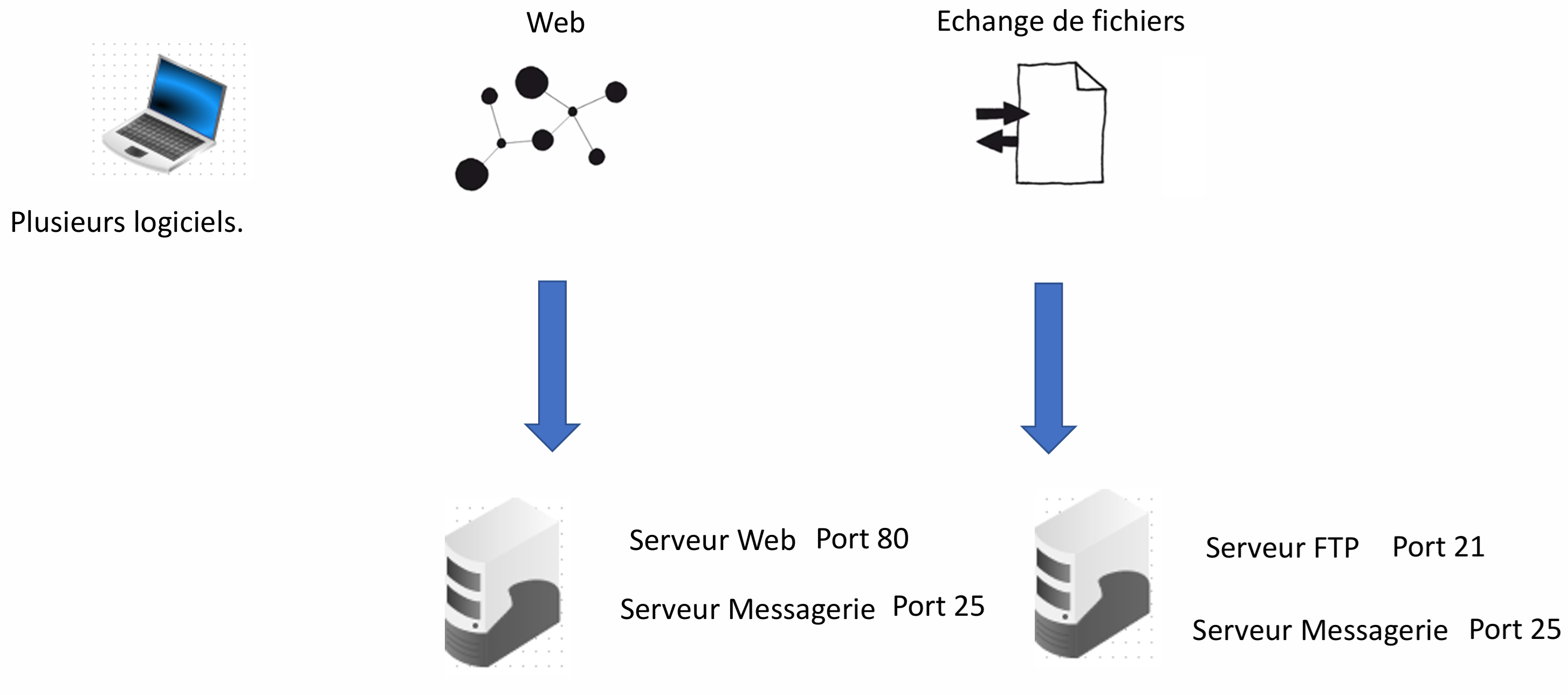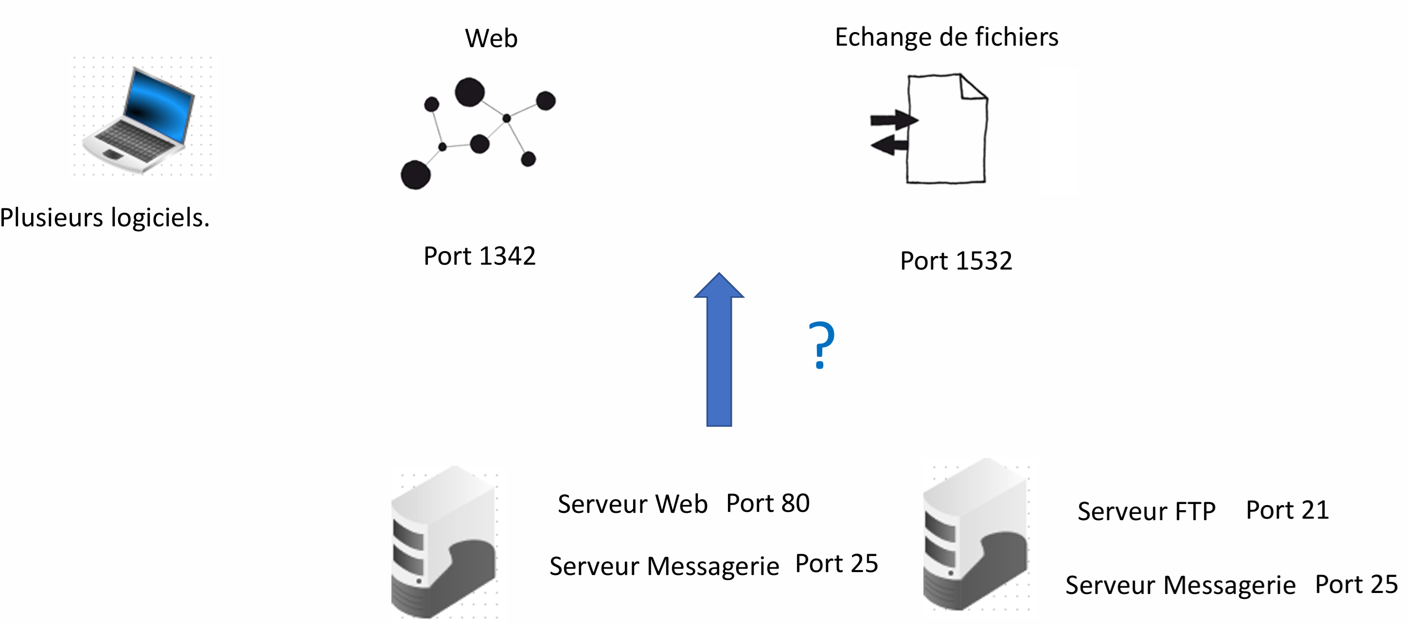 Sur un ordinateur, plusieurs logiciels communiquent simultanément (navigateur web, messagerie, client FTP…). En face, un serveur peut offrir plusieurs services en parallèle.