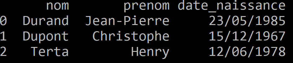 Comme vous pouvez le constater, l'ordre des colonnes est différent. Il faudra donc être attentif à l'ordre des paramètres de la fonction "merge".