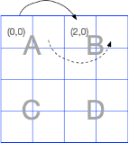 permutation des (zones de) pixels A<=>B, B<=>D, D<=>C